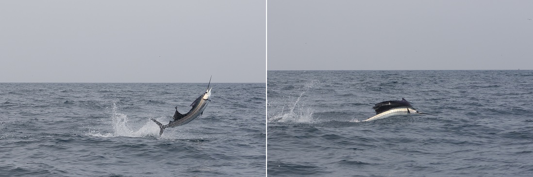 My final count over the two days was 15 sailfish between 80-100lb landed, one black marlin bill-wrapped, fought and dropped, and one sailfish dropped due to a triple strike and some ensuing chaos leading to a livie ending up in the props.