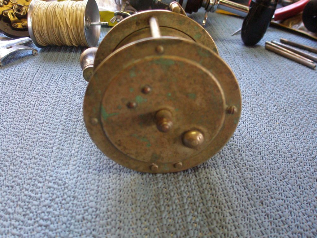 Okay members.  I spent an inordinate amount of time researching the reel.  I looked at hundreds of pictures of old reels.  The reel is an Ocean City Reel, Fortesque, circa 1920s.  Kind of cool.  I have it soaking to get ready to clean it up.  Had I known it would be so old, I would not have soaked it.  Oh well, I'll clean it up but it wont look antiquey (if there such a word).  I'll post some new pictures when it is clean.  Dominick