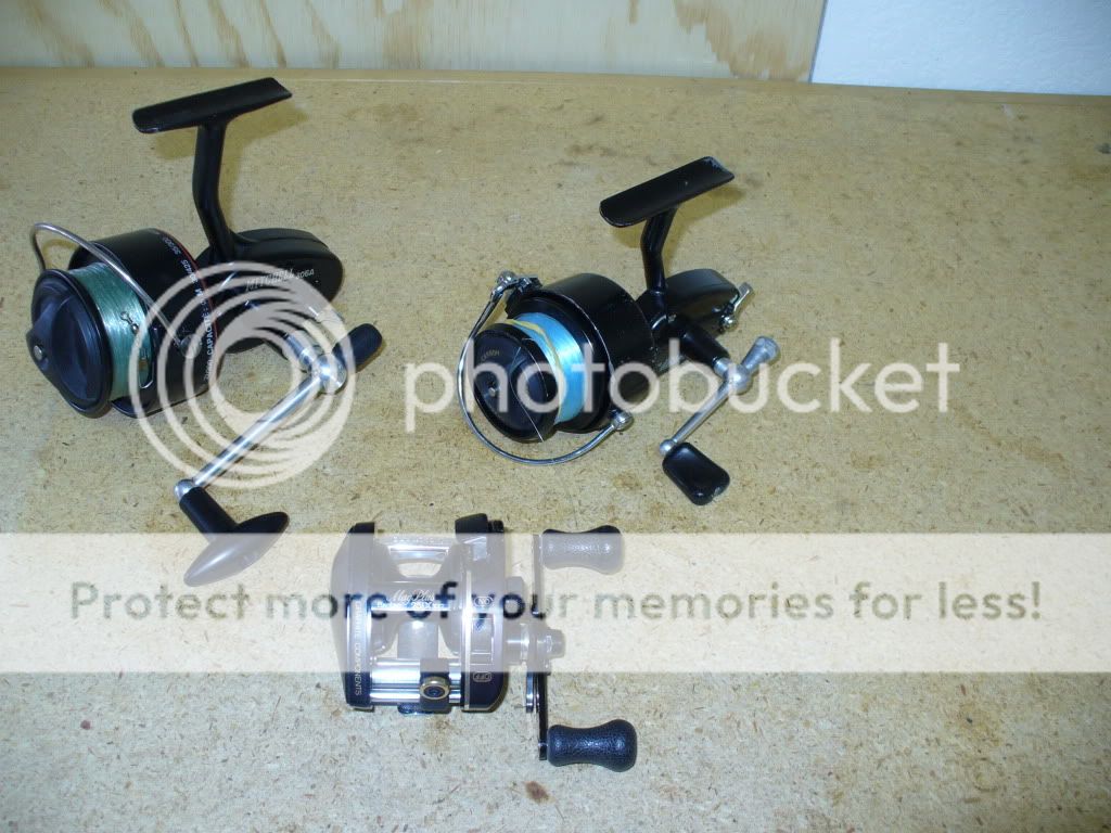 Mitchells 306A and 300, and a Shimano 251 Bantam Mag Plus.  I purchased the Mitchell 300 in 1975.  It was my first reel as an adult.  I thought the 306A would be a good salt water reel, until I saw the Penn 7500ss.  Now it's another one of those reels that just gathers dust.  I've had the Shimano since the mid 1980's.
