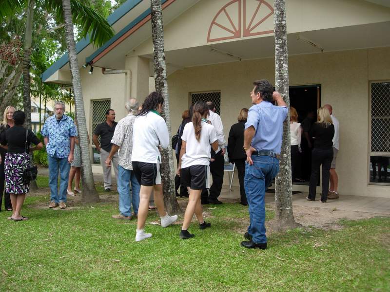 our first day in cairns was a free day.  the girls hit the botanical gardens and the downtown area for shopping.  i went to jack erskine's funeral.  it was only a short walk from the hotel, which was quite a surprise.