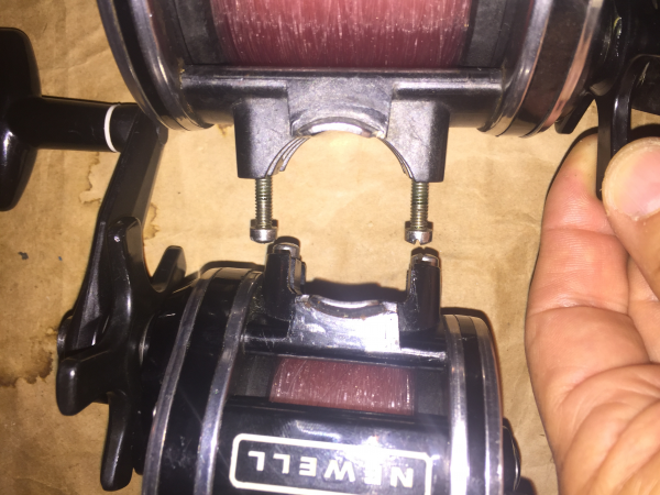 Most Newell reel bases are interchangeable with like models. The aluminum base lowers the reel closer to the rod clamp. or jig rods without a clamp. By contrast the plastic reel bases raise the reel by quite a bit. In some cases the aluminum feet will not fit some rod clamps because of thickness, it's always a good idea to check this before installing it in a reel.